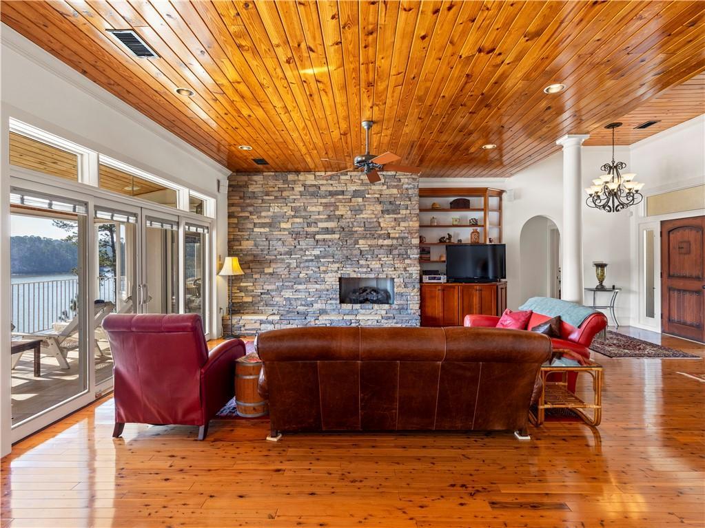 Description: Experience unparalleled luxury in this custom-built lakefront masterpiece, perfectly positioned on a premier Russell Lands peninsula. Boasting 189 feet of pristine shoreline, this 4,812-square-foot residence offers sweeping views and a lifestyle of refined comfort. The open-concept layout is an entertainer’s dream, featuring three spacious bedroom suites and a gourmet kitchen equipped with professional-grade Viking appliances, a gas cooktop, and soft-close cabinetry. Enjoy cozy evenings by any of the three ventless gas log fireplaces or host guests in the expansive walk-out basement featuring a full wet bar. Outside, your private dock—built to the maximum size permitted by Alabama Power—provides 18 feet of deep water at full pool. With the land across the creek protected as Alabama Power forestry land, your privacy is truly unmatched.