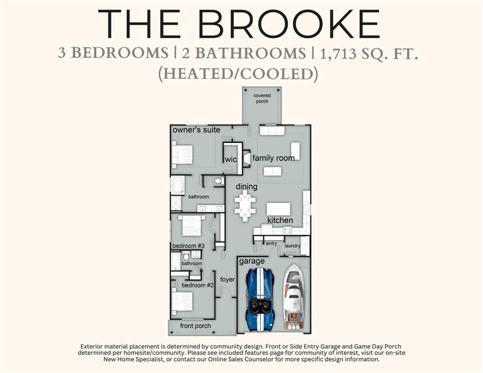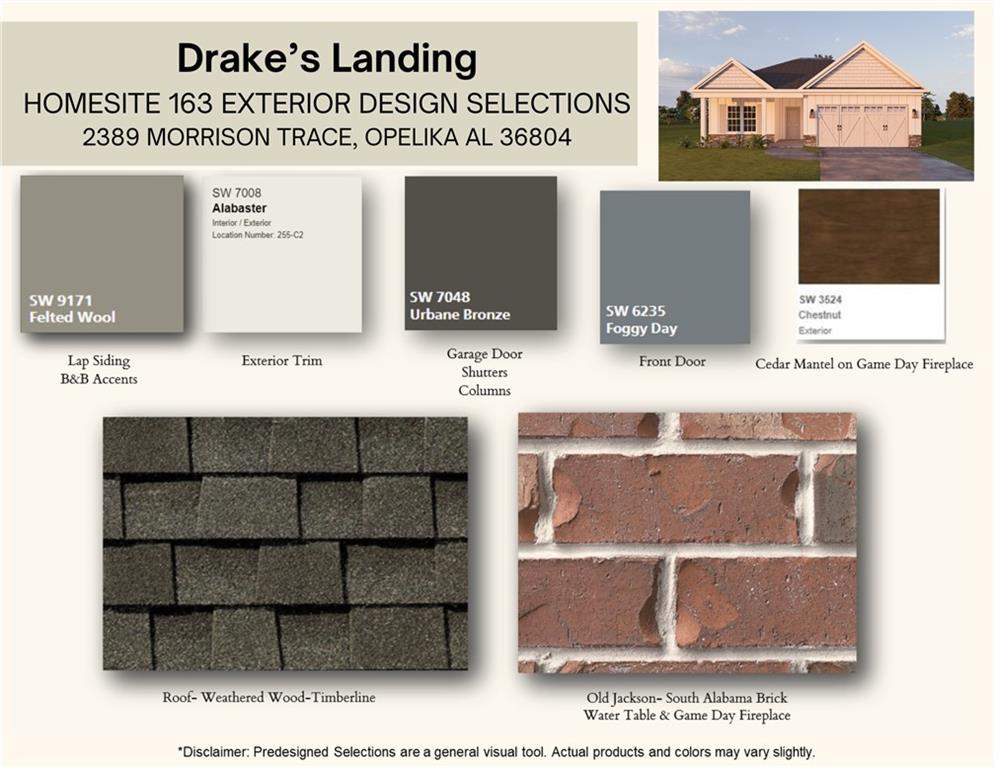 Description: Welcome to Drakes Landing, one of Opelika’s most desirable communities, where comfort, style, and thoughtful design create a place that truly feels like home. Introducing the Brooke B Floorplan, offering beautifully arranged single-story living with 3 Bedrooms, 2 Baths, and a 2-Car Garage, designed for both relaxed living and easy entertaining. A welcoming foyer opens into the spacious Great Room, where tray ceilings and a cozy wood-burning fireplace create a warm, inviting focal point. The open kitchen is designed to inspire, featuring quality cabinetry, granite countertops, tiled backsplash, recessed lighting, stainless steel appliances, and a large center island that offers additional workspace and gathering room. The nearby dining area provides a comfortable setting for everything from quiet mornings to lively dinners, while an optional butler’s pantry adds flexibility and extra storage. Everyday routines feel effortless with the thoughtfully placed Owner’s Entry, complete with a built-in bench and cubbies located near the laundry area, creating the perfect drop zone to keep life organized. The private Owner’s Suite offers a peaceful retreat with abundant natural light, tray ceilings, and a spacious bath featuring a garden tub, separate tiled shower, and a generous walk-in closet. Additional bedrooms are bright, well-sized, and offer excellent closet space. Luxury Vinyl Plank flooring enhances the main living areas with durability and timeless appeal. Step outside to the Signature Gameday Patio featuring a wood-burning fireplace, outdoor speakers, and a ceiling fan, creating the perfect setting for relaxing evenings and memorable gatherings. With amenities including a pool, playground, and clubhouse, the Brooke B plan offers the ideal blend of comfort, connection, and everyday enjoyment in Drakes Landing.