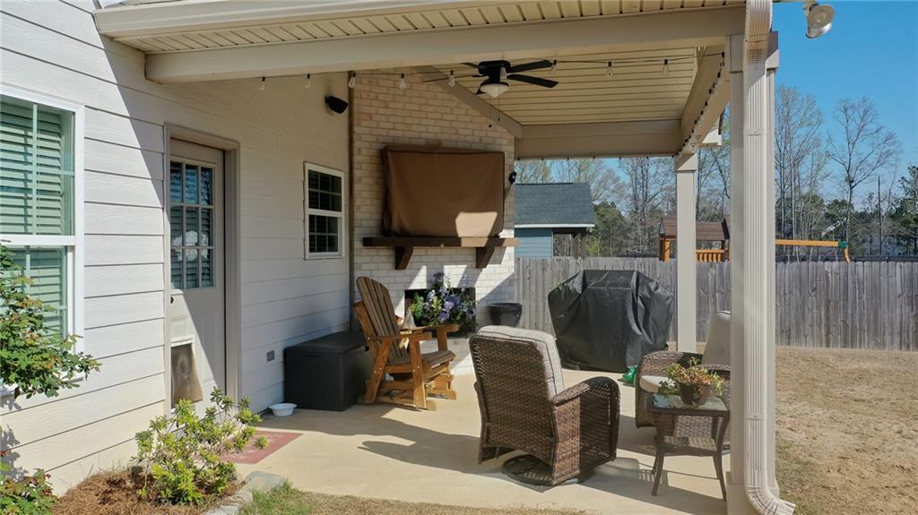 Description: Don't miss out on this diamond. Super convenient to I-85 and Tiger Town. Beautiful 4-bed, 2.5-bath home featuring arched entries, coffered ceilings, and *butler’s pantry. Enjoy wood floors throughout living areas *including the stairs and landing, carpeted bedrooms, and tile in baths and laundry. The covered gameday porch with fireplace, outdoor speakers, and TV wiring is perfect for entertaining. *Private fenced backyard, plus neighborhood amenities including sidewalks, playground, and community pool & pavilion. The house is wired for security system, comes with 2 inch blinds throughout, has a tankless gas water heater, and irrigation.