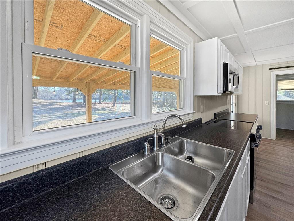 Beautiful Farmhouse that has been completely remodeled. New roof, new windows, new AC, bathroom and kitchen gutted. Wood and Tile flooring throughout. Has excellent view of lake. All appliances included. Move In ready. Two family rooms - one could be used as a third bedroom.