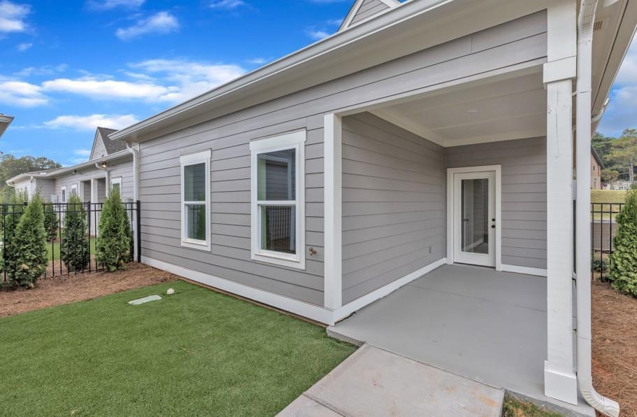 Description: Charming one-level end-unit townhome with a crisp white exterior and abundant natural light from large windows throughout. Enjoy added privacy and space with a fully fenced backyard—perfect for relaxing or entertaining. This home features a two-car garage plus an additional side parking pad for extra convenience. Low-maintenance living at its best, with HOA dues covering lawn care, irrigation, and exterior upkeep. The front of this townhome is facing a beautiful view of a community area with trees and walking trails. Get $7,500 toward closing costs with our preferred lender at Silverton Mortgage! Design selections are in the listing images. Some images used are renderings or images of the model home for the exterior units, not the house for sale. Expected completion for this unit is August-September 2026.