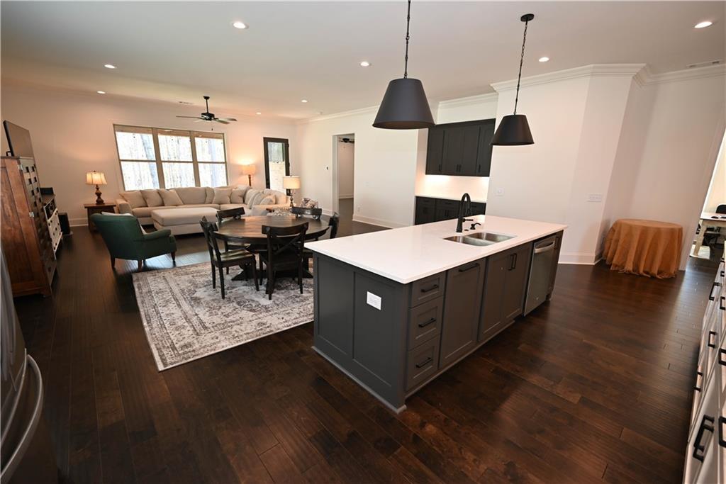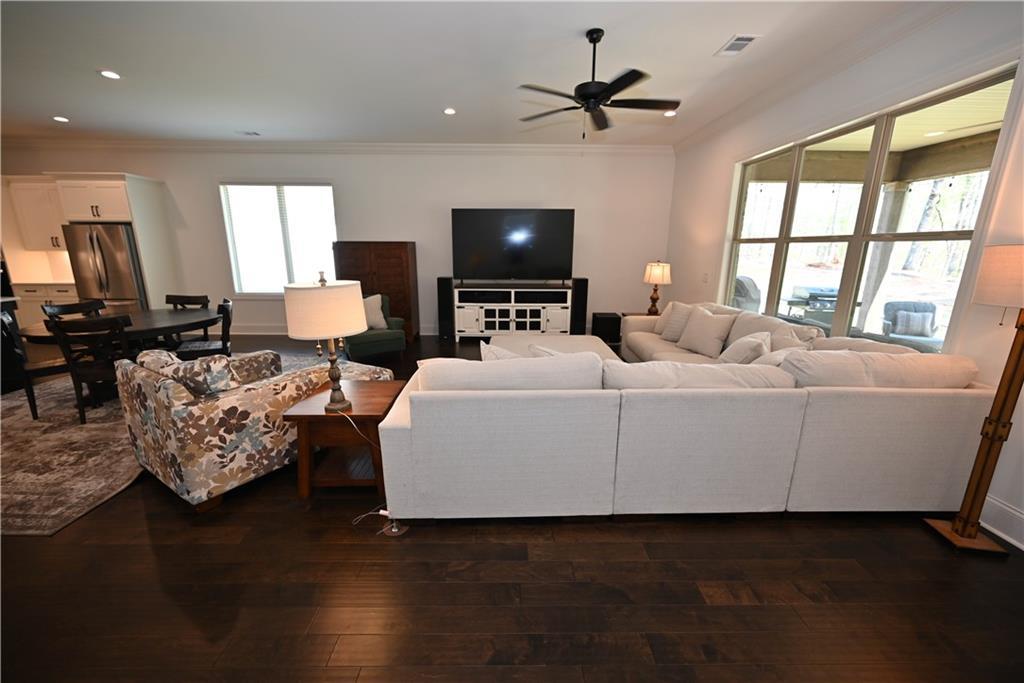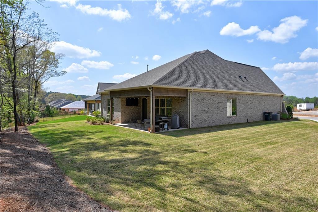 Description: Welcome to 585 Windsor Drive, perfectly situated on a quiet cul-de-sac lot & backing up to peaceful woodlands. This one-level 3 bed/2 bath home offers low-maintenance living with lawn care & landscaping handled by the HOA, so you can spend more time enjoying the neighborhood amenities (which include pickleball courts, two scenic ponds, & a preserved wooded park) or relaxing on the breezy covered porch! Inside, gorgeous hardwoods flow from the inviting foyer throughout the spacious open-concept living area as well as all bedrooms. The great room features expansive windows overlooking the private backyard & seamlessly connects to the dining area & kitchen, creating an ideal layout for both everyday living & entertaining. The kitchen is definitely the star of the show, though, with its quartz countertops & backsplash, stainless steel appliances, custom cabinetry with underlighting, oversized island, 5-burner gas cook top, & huge walk-in pantry. The primary suite offers a relaxing retreat with a spa-inspired bath featuring a curbless tile/glass shower with seating, dual vanities, & generous walk-in closet. Two additional bedrooms provide flexibility for guests, office space, or hobbies. Additional highlights include 10’ ceilings, 8’ doors, windows & natural light galore, & a 2-car garage. Conveniently located near RTJ Golf Trail, Tigertown, & downtown Opelika with easy access to Highway 280, I-85, AU campus, & downtown Auburn, this home offers a perfect blend of comfort, style, & convenience!