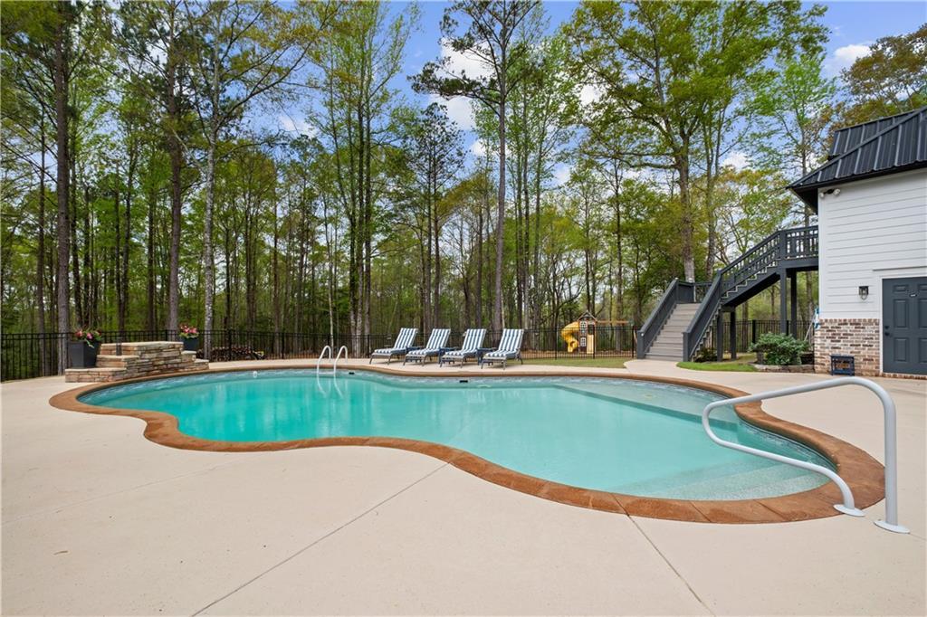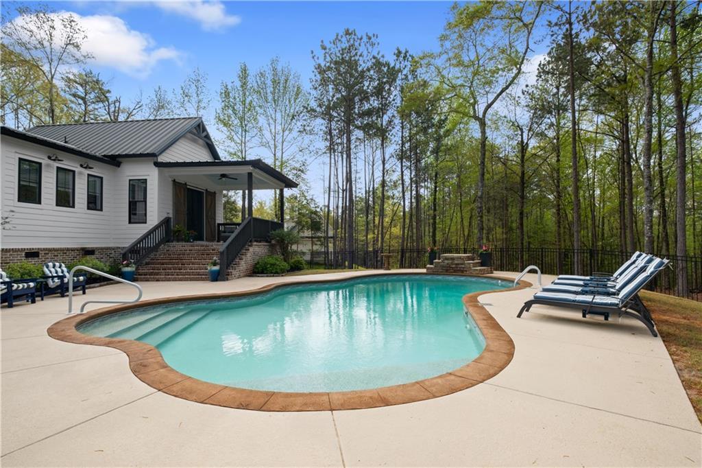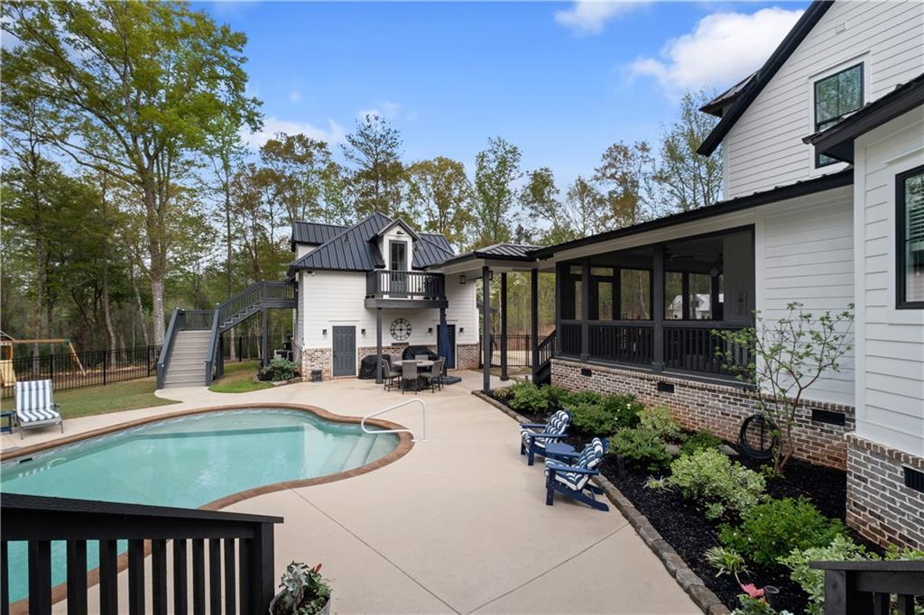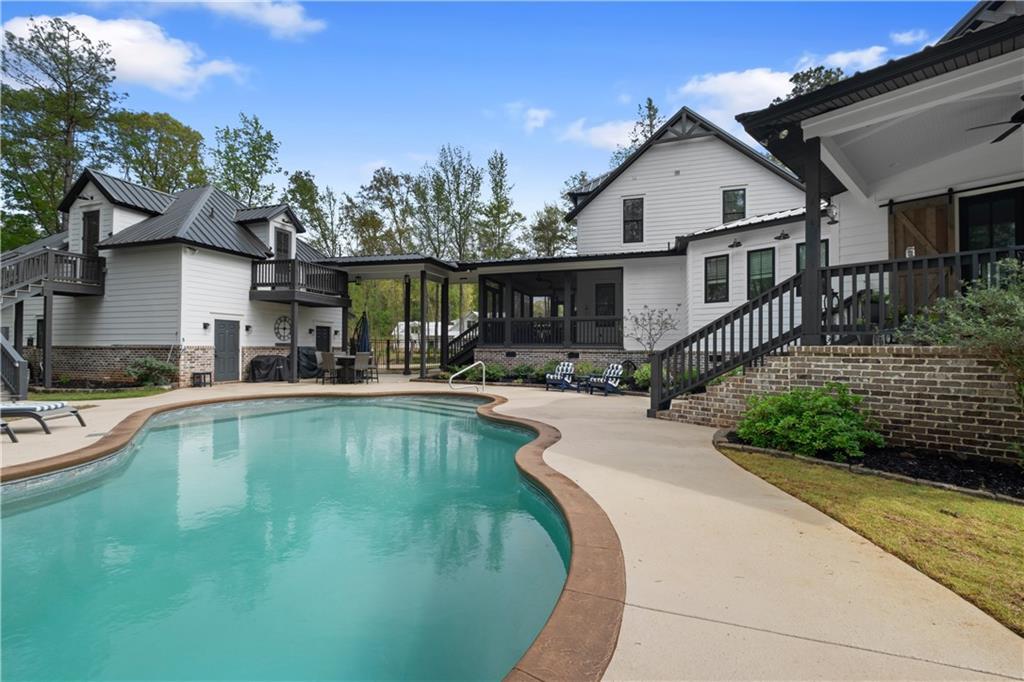 Description: Tucked away in Waverly—one of the area’s most beloved small towns just minutes from Auburn and Opelika—this exceptional property spans three acres within a charming neighborhood. The estate features a beautifully appointed primary residence, a stunning pool, & a fully equipped apartment above an oversized three-car garage. Expansive porches, both screened and open, provide sweeping views of the manicured landscape and invite year-round outdoor living. Inside, the open great room is designed for gathering, with a fireplace anchoring the space and uninterrupted access to the dining area and kitchen—each room providing porch access for a cohesive indoor-outdoor lifestyle. The kitchen is thoughtfully designed with marble countertops, double ovens, an apron-front sink, pot filler, & a generous walk-in pantry, complete with custom shelving and counter workspace tucked behind a barn door. The main-level primary suite serves as a private retreat with its own porch and direct access to the pool. Vaulted ceilings in both the bedroom and bath create a sense of scale, complemented by dual vanities, a soaking tub, & an oversized shower. Upstairs, a sizable loft serves as a flex room, accompanied by two bedrooms and a spacious shared bath. The pool is well positioned between the main home and garage apartment, creating a central outdoor gathering space. A dedicated full bath serves the pool area. The apartment includes a full kitchen, living/sleeping area, bathroom, and ample storage—ideal for guests, extended family, or potential rental income. The garage is equally impressive with three bays, along with extensive workshop & storage space. Also offering everyday functionality is a built-in drop zone/mud bench, powder bath, & conveniently located laundry. Immaculate landscaping, fencing, rock terraces, & a charming playset complete this truly unique and highly desirable cul-de-sac property positioned at the end of a winding drive.