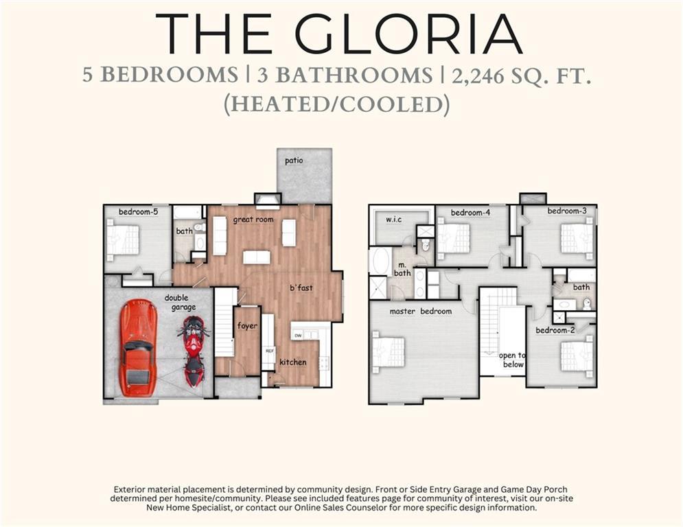 Description: A vibrant Hughston Homes community, Drakes Landing offers the perfect blend of ease, comfort, and modern living, making it one of Opelika’s most sought-after neighborhoods. Introducing the Gloria A Floorplan, featuring 2,246 sq. ft. of energy-efficient living, designed with today’s lifestyle in mind. This 5-bedroom, 3-bath home shines with an open-concept layout and abundant natural light. The spacious great room, anchored by a cozy wood-burning fireplace, flows effortlessly into a large kitchen with stylish cabinetry, granite countertops, a tiled backsplash, recessed lighting, and stainless-steel appliances, including an electric range, microhood, and dishwasher. A convenient pantry adds extra storage, while the fifth bedroom and full bath on the main level offer flexible space for guests or a home office. Upstairs, retreat to the generous owner’s suite featuring a relaxing bath with a garden tub framed by natural light, double vanity, and separate shower. The huge walk-in closet provides plenty of space for all your favorites. The additional bedrooms offer ample closet space, with the laundry and a hall bath just steps away. Throughout the main level, enjoy durable luxury vinyl plank flooring, smart home technology, and a host of included features. Step outside to the signature Gameday Patio, complete with a wood-burning fireplace, ceiling fan, and outdoor speakers, perfect for entertaining or cozy fall evenings. Stylish. Spacious. Smart. With a pool, playground, and clubhouse, Drakes Landing offers the perfect balance of upscale comfort and an active, connected lifestyle.