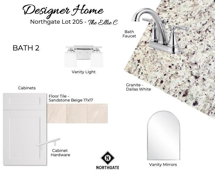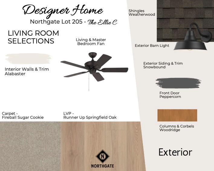 Description: New Designer Home in Northgate! The Ellie C Plan - Close by mid-September! With 4 bedrooms, 2.5 bathrooms, and a well-designed layout & 1,918sq ft, the Ellie C Plan offers a spacious and well-designed layout perfect for modern living. The main floor features an open-concept great room, dining room, and kitchen, creating an inviting space for family gatherings and entertaining. The kitchen includes a pantry for additional storage, and a convenient laundry room is located nearby. A powder room is also available on this main level for guests. The owner's suite, located on the first floor, provides a peaceful retreat with a private bathroom and a walk-in closet. Upstairs, you'll find three additional bedrooms and a full second bathroom, offering ample space for family, guests, or home offices. A covered front porch welcomes you, while a covered back porch extends your living area for outdoor enjoyment. The home also includes a 2car garage, adding functionality and extra storage space. The Ellie plan blends comfort and style for everyday living. Northgate Amenities include firepit and dog park, with pool, pavilion and pickle ball court to come!