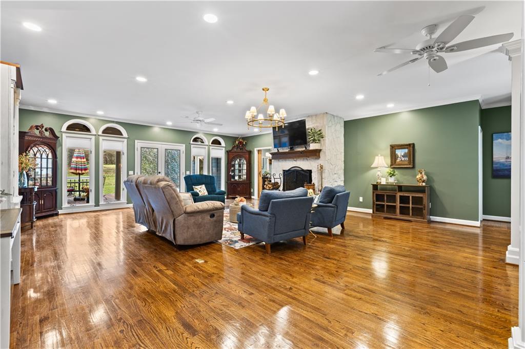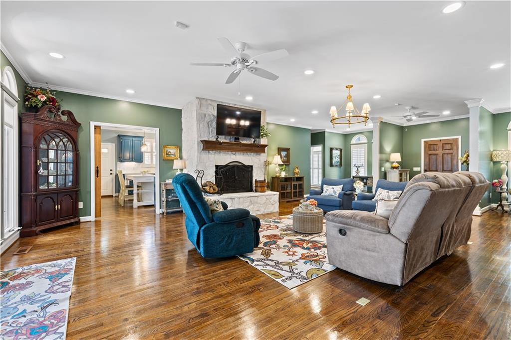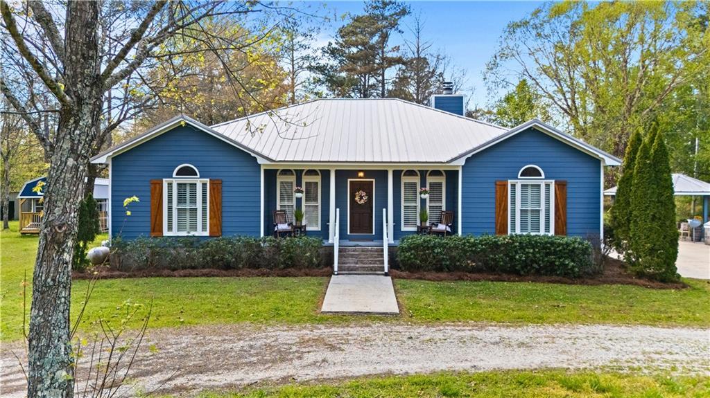 Description: Quiet country living in excellent condition just 15–20 minutes from Auburn/Opelika! Set on 12+ beautiful, multi-use acres, this versatile property offers room to enjoy privacy, horses, gardening, ATVs & more. No HOA here! Surrounded by other large land owners, the home sits comfortably back from the road offering both a circular drive & large concrete parking pad. A one-level, move-in ready layout with 3 beds, 3 baths & multiple flex spaces offers versatility for families, hobbyists or empty nesters alike. Major updates include (NEW in 2025) metal roof, HVAC & two water heaters; plus wood flooring (no carpet) & plantation shutters in much of the home, updated lighting, and fresh interior & exterior paint w/custom cedar shutters. Inside, the expansive great room centers around a white-washed rock, wood-burning fireplace which opens to the large porch/rear deck—perfect for enjoying the peaceful setting. The updated kitchen includes painted cabinetry, granite counters, quartz island, tile backsplash, brushed brass hardware, porcelain double sink, under-cabinet lighting & young appliances (incl KitchenAid fridge & dishwasher). Nearby you’ll find a walk-in pantry, add'l prep space & second fridge. All appliances included! Also b'fast and formal dining (or den/flex) spaces. The owner’s suite boasts an updated bath w/painted cabinetry, granite counters, walk-in shower, charming tile floors & two oversized closets—one large enough for an office, nursery, etc. Guest rooms each feature full baths w/distinctive updates! Huge laundry/hobby room w/ folding bench, utility sink, washer/dryer (incl), more storage & outside access. Back outside discover a powered gazebo, open wood shed, modest barn & ultimate man-cave (24×48 enclosed, powered shop w/concrete/gravel flrs & storage). Optional new building & Polaris side-by-side available for purchase. Ask for full list of info/updates! So much storage, so much versatility & so much peace await - don't miss out!