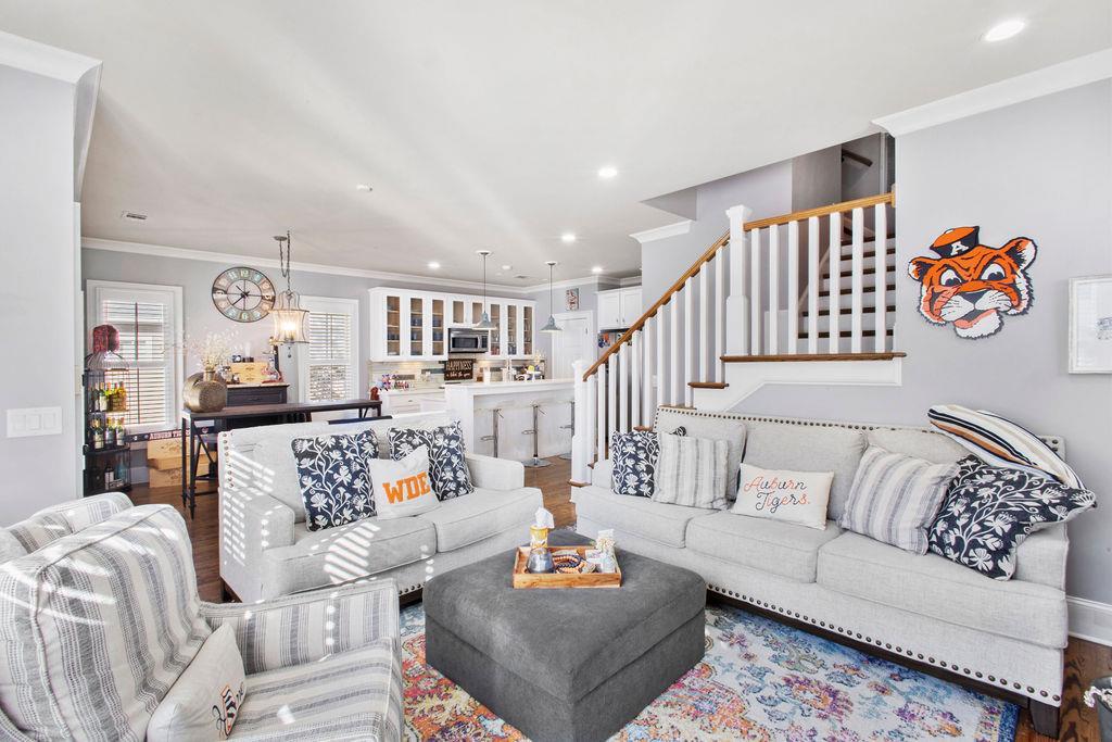 Description: Welcome to National Village living at its best—where everyday life feels like a retreat. This 3 bedroom, 2.5 bath home sits on a private wooded corner lot inside the highly sought-after Robert Trent Jones Golf Course community. Inside, you’ll find an open-concept floor plan designed for both comfort and entertaining. The kitchen features quartz countertops, ample cabinetry, and flows seamlessly into the living area with a cozy gas fireplace. Crown molding and plantation shutters throughout add a timeless, upscale feel. The primary suite is conveniently located on the main level, offering privacy and ease of living, while upstairs features two additional bedrooms connected by a Jack-and-Jill bathroom—perfect for family or guests. Step outside to enjoy a screened-in back deck overlooking a peaceful, wooded setting. The property also offers a double garage and two separate outdoor storage areas for added functionality. Living in National Village means access to resort-style amenities included in the HOA: fitness center, tennis and pickleball courts, access to Robert Trent Jones Golf, Marriott pools and hot tubs, stocked fishing lakes, and over 10 miles of scenic walking trails. Residents also enjoy discounts at on-site Marriott restaurants. If you’ve been looking for low-maintenance living with high-end amenities—this one delivers.