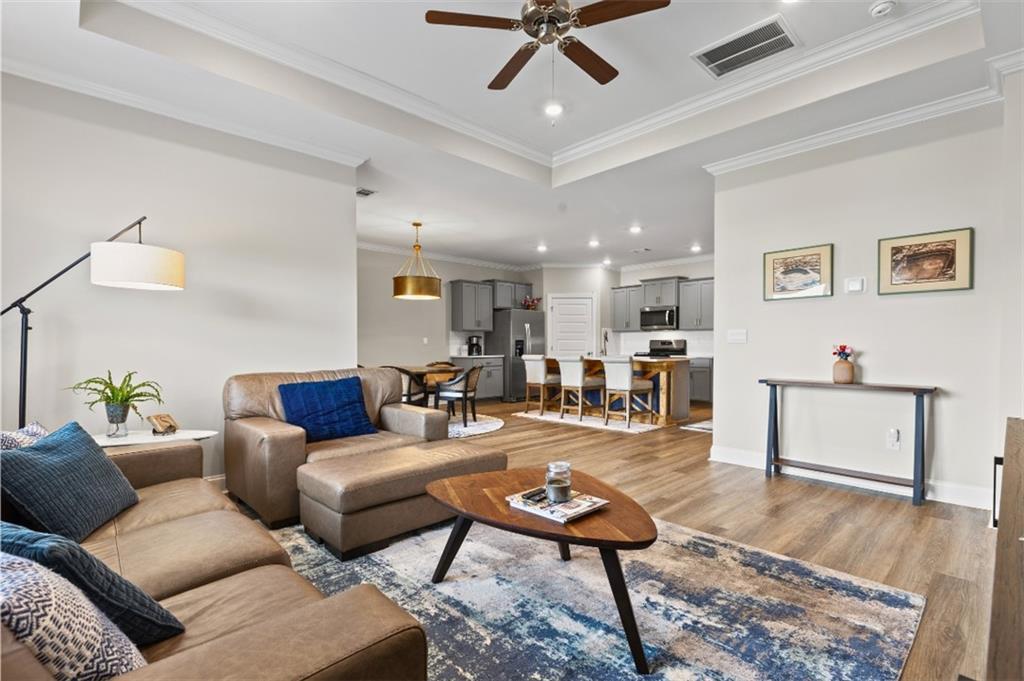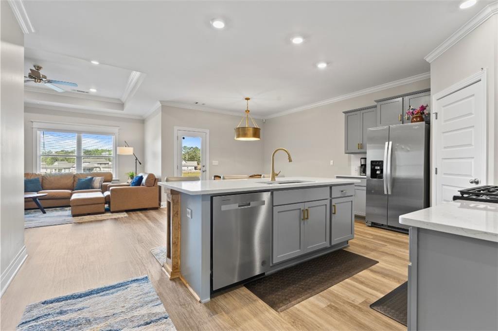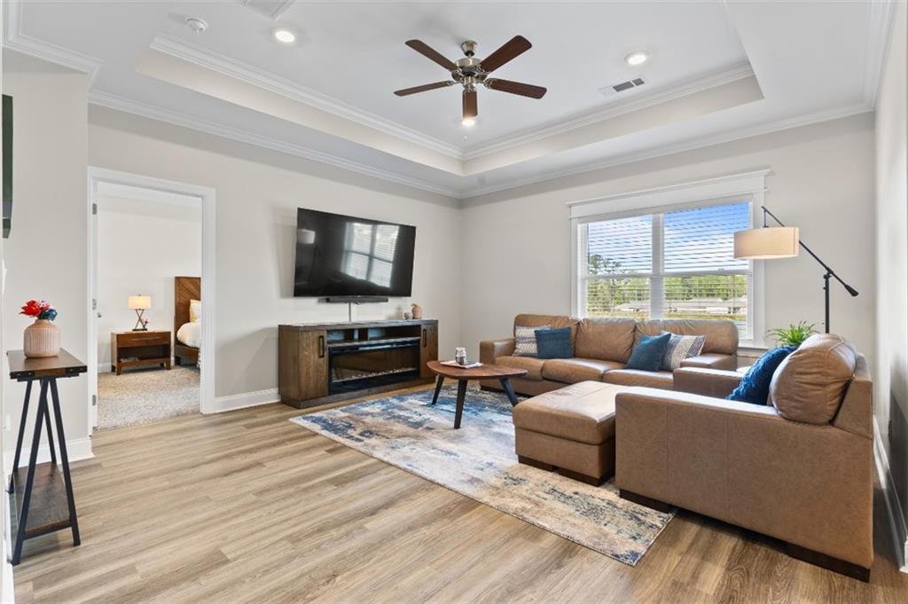 Description: Built in 2023, this beautifully upgraded home offers lake views, a fenced backyard, and rare short-term-rental potential in Auburn. Thoughtful improvements after closing elevate this home beyond builder basic, including an irrigation system, gutters, a custom island, upgraded lighting and hardware throughout, added laundry room cabinetry, crown molding, and a garbage disposal. A stunning statement island anchors the kitchen with generous seating, substantial workspace, and custom designer detailing that brings warmth, contrast, and elevated style. The primary bath is a true showstopper, featuring an upgraded shower with sliding glass doors, floor-to-ceiling tile, built-in shelving, and elegant accent details for a spa-like feel. Enjoy neighborhood amenities including a lakefront pool and fitness center. Whether you are looking for a full-time residence, game day getaway, or investment opportunity, this home offers flexibility, style, and value in one of Auburn’s increasingly hard-to-find short-term-rental-friendly locations. About 12 mins to TOOMER'S Corner and less than 2 mins drive to HWY 280.