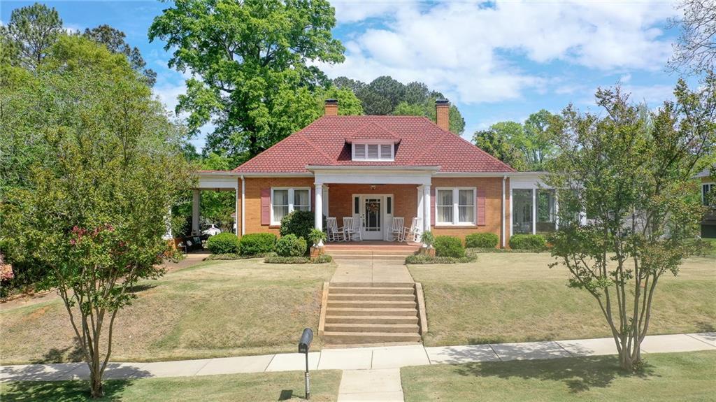 Description: Enjoy being a part of Opelika's Victorian Front Porch tour. This beautiful mid-century home is located in Opelika's Historic District. Sip your morning coffee on the front porch or relax in the sunroom reading your favorite book. The timeless charm of 12' ceilings, beautiful beveled glass and spacious living areas all take you back to a by-gone era. It's an easy stroll to desirable downtown Opelika, Floral Park and Opelika's Summer Swing Concert series. The many updates include refinished hardwood floors, new ceiling fans in 2024; gas logs in LR fireplace in 2025; new HVAC in 2023; new gas lines for kitchen & FP 2024; new water lines in kitchen & laundry 2024; new microwave in 2026; other appliances new in 2024 except DW; new electric water heater 2024; stack W/D remain. Gas stove is convection/conventional and includes an air fryer. Plumbing, electrical, HVAC have been maintained under service contract.