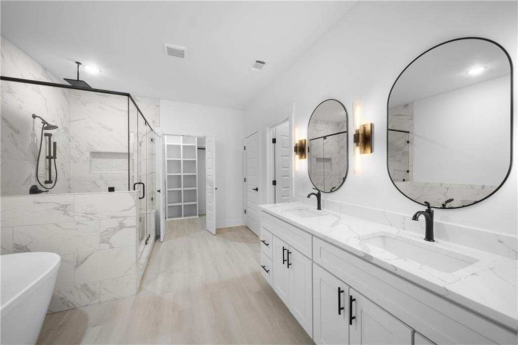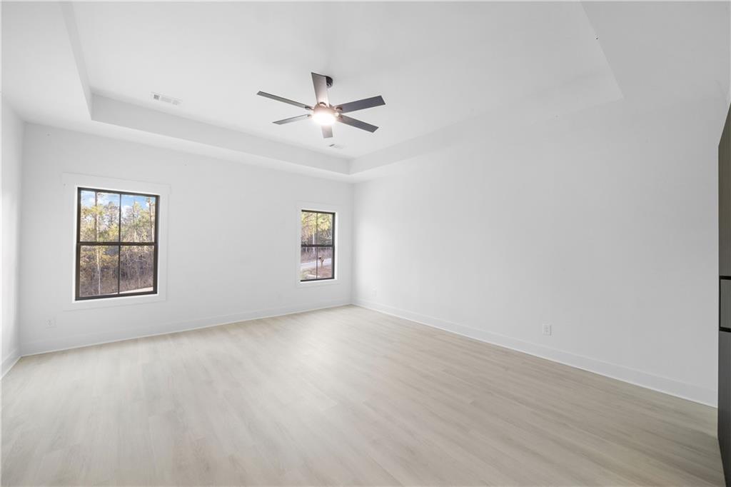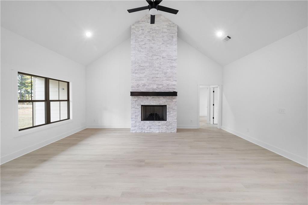 Description: Check out this stunning new construction near Lake Oliver, nestled in a highly sought-after neighborhood! This spacious home offers 4 bedrooms, 2.5 bathrooms, 4th Bedroom would be perfect for a home office, playroom, or guest space. Two of the bedrooms are connected by a convenient Jack and Jill bathroom, while the split floor plan ensures added privacy. LVP flooring throughout the home. Enjoy the open-concept kitchen and dining area, featuring quartz countertops, a large island ideal for cooking, entertaining, or casual meals. The kitchen is thoughtfully designed with both style and function in mind. The master suite boasts 10-foot ceilings, a luxurious bathroom with a separate tub and shower, dual vanities, and his and hers walk-in closet. The living room offers an inviting space with an electric fireplace. A two-car garage and extended driveway provide plenty of parking. Practical features include a mudroom and laundry area with access from both the garage and backyard. Relax on the covered front or back porch, with the back having a ceiling fan and enjoy the peace and privacy of a home tucked away from the main road. All this, just minutes from shopping, dining, recreation, and Lake Oliver. With 2255 square feet of well-designed space, this property is ready to welcome its new family to come in and call home!
