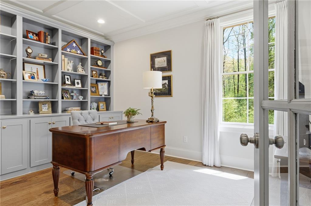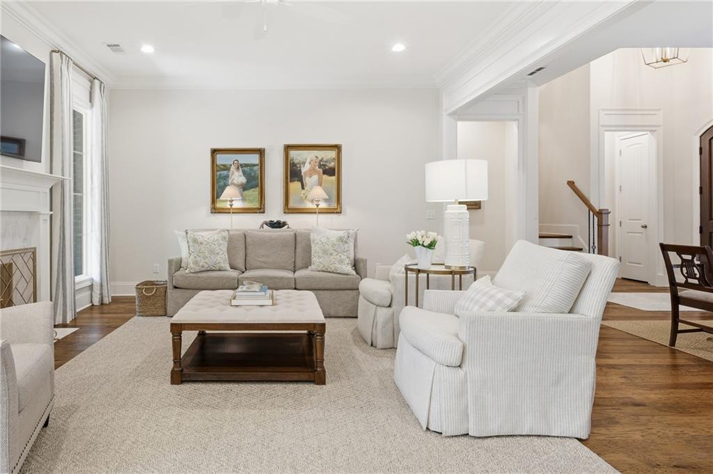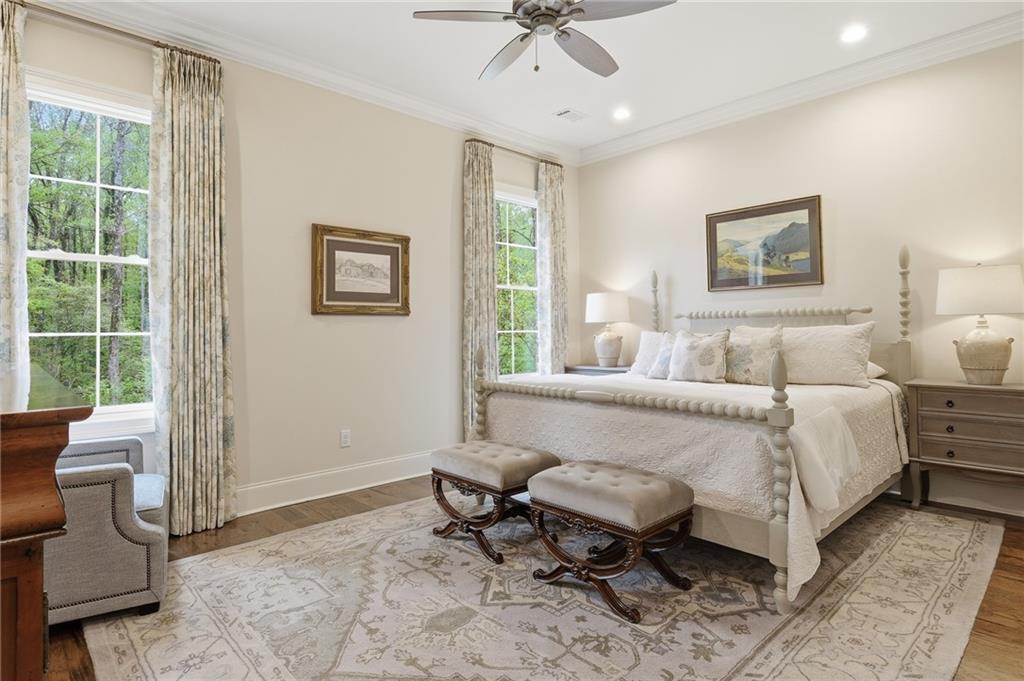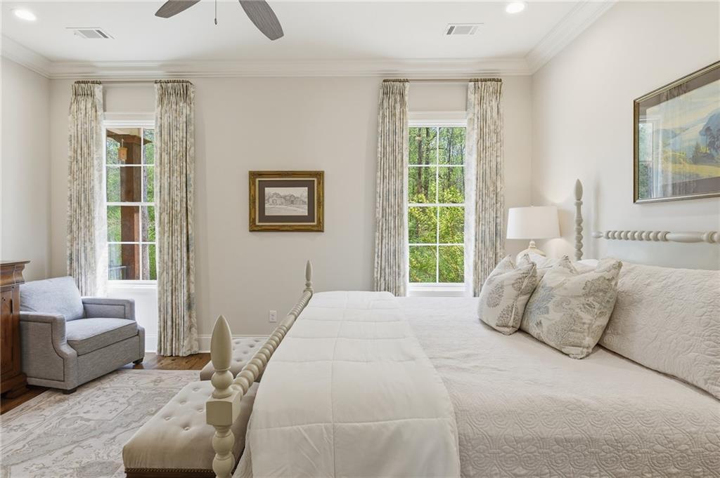Description: Privacy and natural surroundings define this exceptional Bridgewater residence, where a backdrop of undeveloped acreage provides a setting that is both secluded and connected. Only a few years old, this custom home reflects thoughtful design and meticulous care, with a functional floor plan that lives beautifully and interiors that are timeless, elegant, & inviting. A 20' foyer opens to the dining room and living room beyond, and sand-and-finish hardwood floors run throughout the main level. In the great room, floor-to-ceiling windows flank a marble-clad fireplace with a classic mantel echoing the home’s detailed trim. The kitchen is both refined and highly functional, featuring ceiling-height cabinetry, marble countertops, a coffee bar, pot filler, KitchenAid appliances, pantry, & island with two-sided storage, plus seating for three. A charming breakfast nook provides porch access. The primary bedroom, tucked beyond a barrel-vaulted alcove, enjoys serene views of the expansive backyard, while the bath offers opposing marble-topped vanities—hers with a dressing table and his with a linen closet—alongside a zero-entry shower with three heads and an impressive custom closet with wood shelving. A custom drop zone at the owner’s entry sets the tone for an organized household, and the adjacent powder room, finished in wallpaper of the same pattern and coupled with wainscoting, makes a delightful statement. The nearby laundry is both practical & polished with custom cabinetry & open shelving. Upstairs, a landing overlooks the foyer, and two bedrooms share a jack-&-jill bath with ceiling-height tile, dual vanities, & a linen closet. A generous bonus room/5th bedroom with two walk-in closets offers flexible living space. Ample attic storage completes the upper floor. Outdoor living begins on the large covered porch overlooking the beautifully landscaped yard & wooded acreage beyond, creating a space that feels established, private, & perfectly at home in its surroundings.