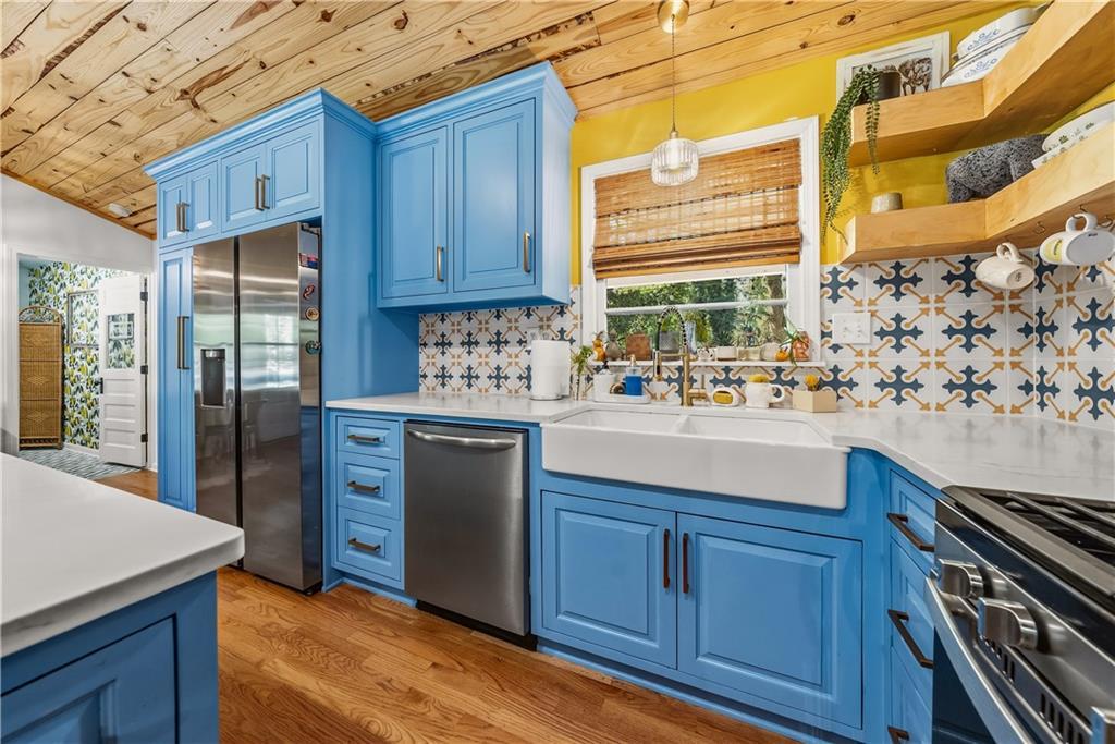Description: Welcome to your peaceful escape, where the calm feels almost magical the moment you walk through the door. This beautifully renovated home blends timeless character with modern updates you won’t find in new construction. Step into a gourmet kitchen designed to impress, featuring quartz countertops, custom cabinetry, updated appliances with a gas stove, a wall-mounted pot filler, and a built-in wine fridge all flowing seamlessly into an open-concept living space perfect for everyday comfort and entertaining. The secondary bedroom offers a versatile Murphy bed with a built-in desk and shelving, ideal for a home office or guest retreat. Major upgrades include a metal roof, new HVAC, updated plumbing and electrical, plus all-new doors, lighting, and finishes throughout, giving you peace of mind for years to come. Open the charming Dutch back door and step onto a spacious 20x24 deck thoughtfully built around mature trees, creating a one-of-a-kind outdoor retreat with natural shade and privacy. Complete with a shed and greenhouse, this space is perfect for relaxing or hosting. Don’t wait, homes with character like this don’t come along often.