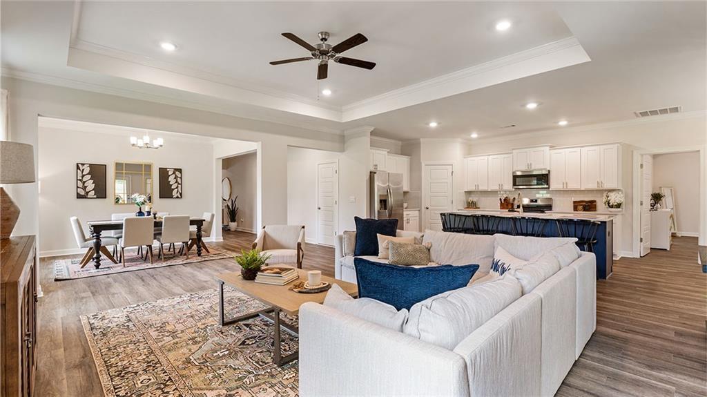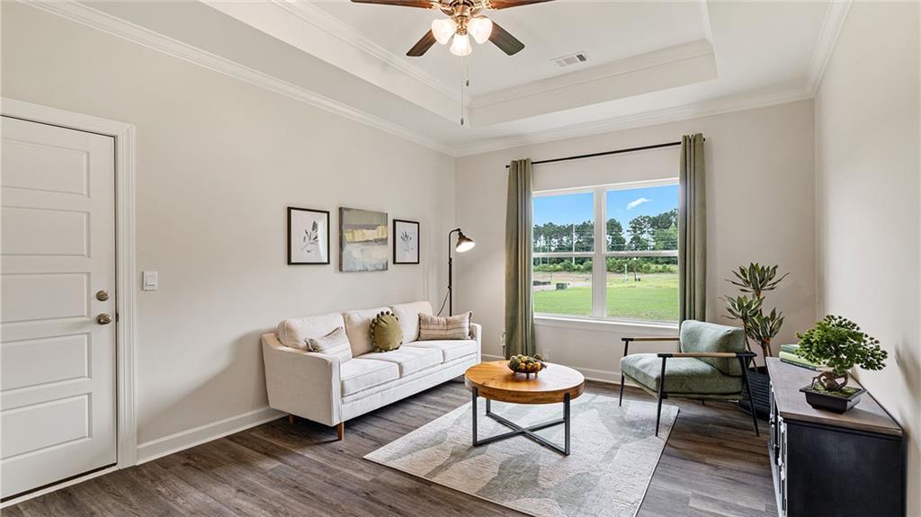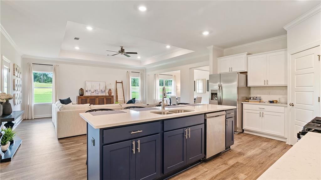 Description: Welcome to 2299 Forrest Cove, our Camden floorplan featured at our beautiful Preserve community. This one-story floor plan is great for multi-generational needs with a separate living, bathroom, and bedroom space sometimes referred to a mother-in-law suite. Beautiful LVP flooring throughout the house with bathrooms having beautiful white quartz countertops and shaker style cabinets. Entering the kitchen and living room area, you will notice plenty of natural sunlight illuminating the main area. The living room has tray ceilings that open the room, making your living space feel much more comfortable. The kitchen has stainless steel appliances and comes with beautiful cabinets. The large island has plenty of storage in it and every surface has elegant white quarts countertops. Includes a Home is Connected smart home technology package which allows you to control your home with your smart device while near or away. Pictures are representational only. The Camden is a must-see floor plan so schedule your tour today!!