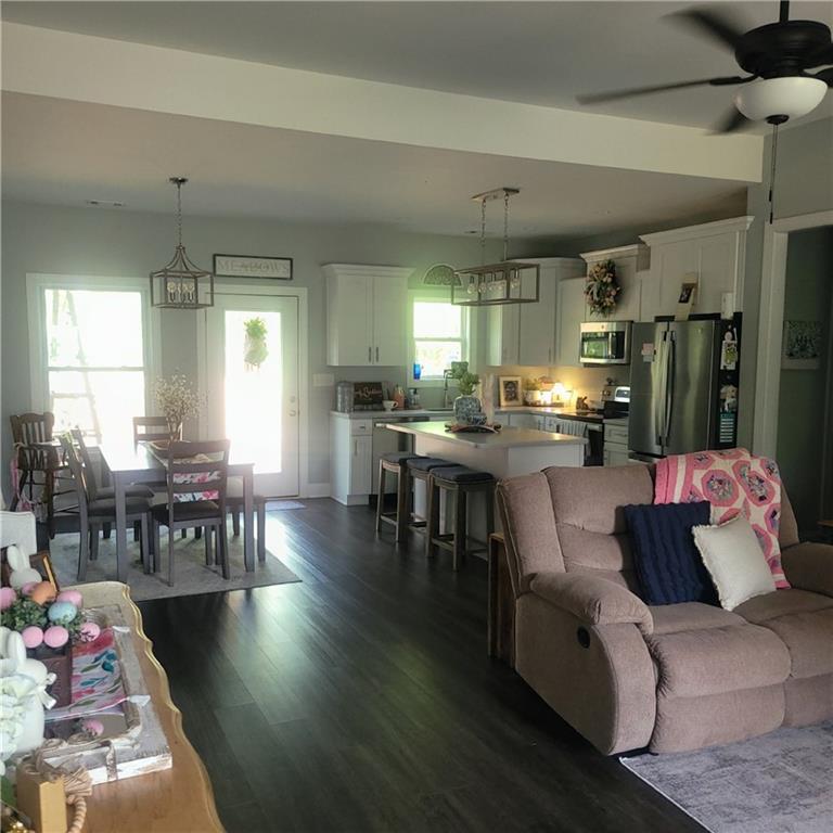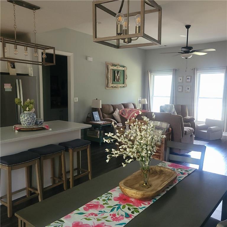 Description: Been looking for that dream home? This beautiful like new home is appx 5 yrs old and located in Calela Village Subdivision. Includes open living, dining and kitchen area with split bedroom plan. Master suite with master bath and walk in closet. 2 additional bedrooms with hall bath. All appliances remain including washer and dryer. There is a large pantry, mud room, laundry room and 2 car garage. Programmable thermostat that you can set from your phone. Fresh air vent and purification light. 2 car garage, LVP flooring and carpet. 2 attics with partial flooring. Underground utilities. Leaf filter with lifetime warranty. Security system with outdoor cameras.