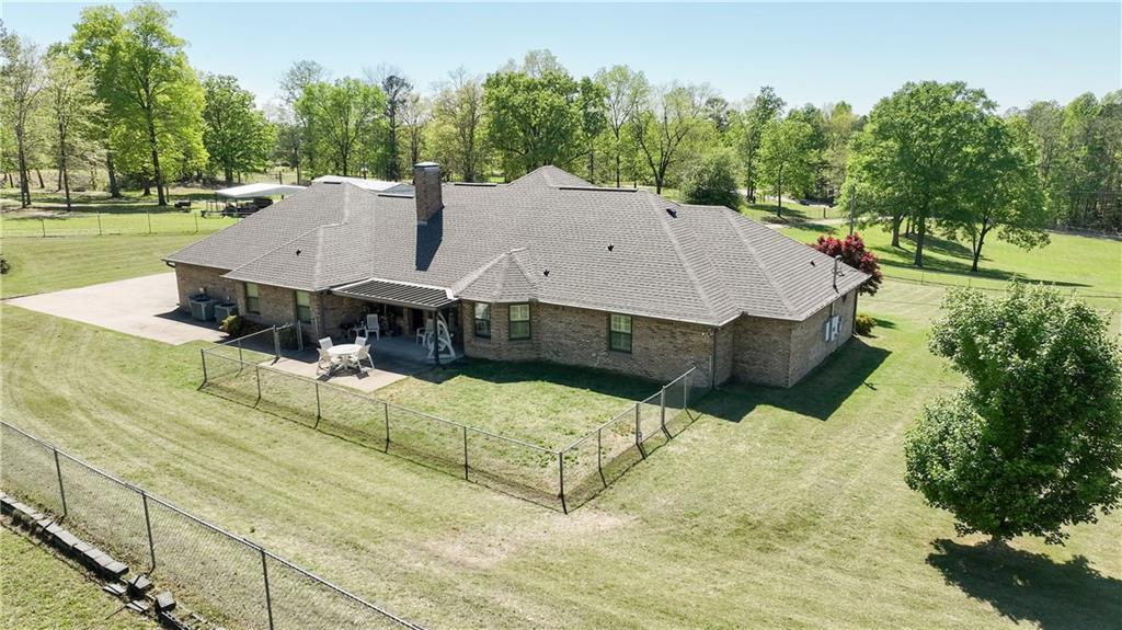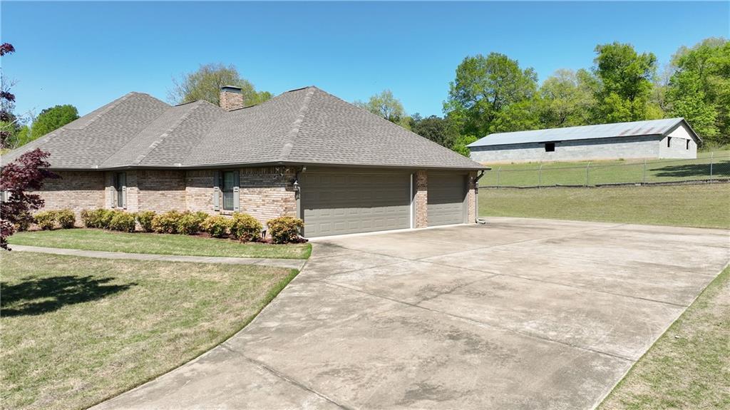 Description: Set on nearly 6 pristine, fully fenced acres with extensive cross fencing, this beautiful property offers the perfect blend of privacy and charm, ideal for horses or other livestock. A large barn provides endless possibilities, whether you envision a workshop, business space, or animal stalls. A long concrete driveway with electric gates welcomes you home, leading to an all-brick residence featuring an oversized 3 car garage, BRAND NEW ROOF, irrigation system, gutters, and two additional outdoor storage buildings. Inside, the thoughtfully designed split floor plan includes 4 br and 2.5 baths, with abundant real wood cabinetry and southern style plantation shutters on all windodws. The spacious kitchen features granite countertops, a cooktop, and wall oven, and opens seamlessly to a formal dining room or a secondary dining area highlighted by a charming bay window. There is also a versatile flex room offers the perfect space for a home office, formal living area, or bonus room. The expansive living room boasts tile flooring, built-in shelving, and a cozy brick fireplace making it a wonderful place to entertain guests. The primary suite is a true retreat, complete with a large vanity, generous walk-in closet and shower. Enjoy peaceful mornings and quiet evenings on the covered back porch, where you can take in the sounds of wind chimes and birds while overlooking your private acreage.