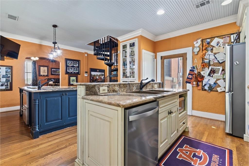 Description: There are addresses in Auburn, and then there are addresses. 428 West Magnolia Avenue is the latter - a rare, detached single-unit residence on one of Auburn’s most storied streets, positioned just moments from Auburn University’s campus, Jordan-Hare Stadium, and the energy of downtown Auburn and Toomer’s Corner. This is the ultimate game day house. Rich with the character that only decades of history can produce, this home offers 2 bedrooms, 1.5 bath in the main living space, a basement, and an additional converted attic loft providing flexible space for living, working, or hosting. Original hardwood floors, 9' ceilings, a gas fireplace, and a dramatic spiral staircase give the interior a warmth and soul that simply cannot be replicated in new construction. The kitchen has been thoughtfully appointed with white cabinetry, a contrasting dark island, and stainless appliances, a nod to modern function without sacrificing the home’s vintage charm. The outdoor living space is equally compelling: a private patio with ample room for entertaining, surrounded by mature landscaping that feels far removed from the pace of the street just beyond. Five dedicated parking spaces convey with the property, a genuine commodity at this address. On gameday, 428 West Magnolia Avenue delivers something no other address in Auburn can replicate. Jordan-Hare Stadium, home to 88,000 of the loudest fans in college football, is right out your front door. Neville Arena, Tiger Walk, Toomer’s Corner, the roar of the crowd, it all happens here. No shuttle. No commute. Just Auburn gameday, lived exactly the way it should be.