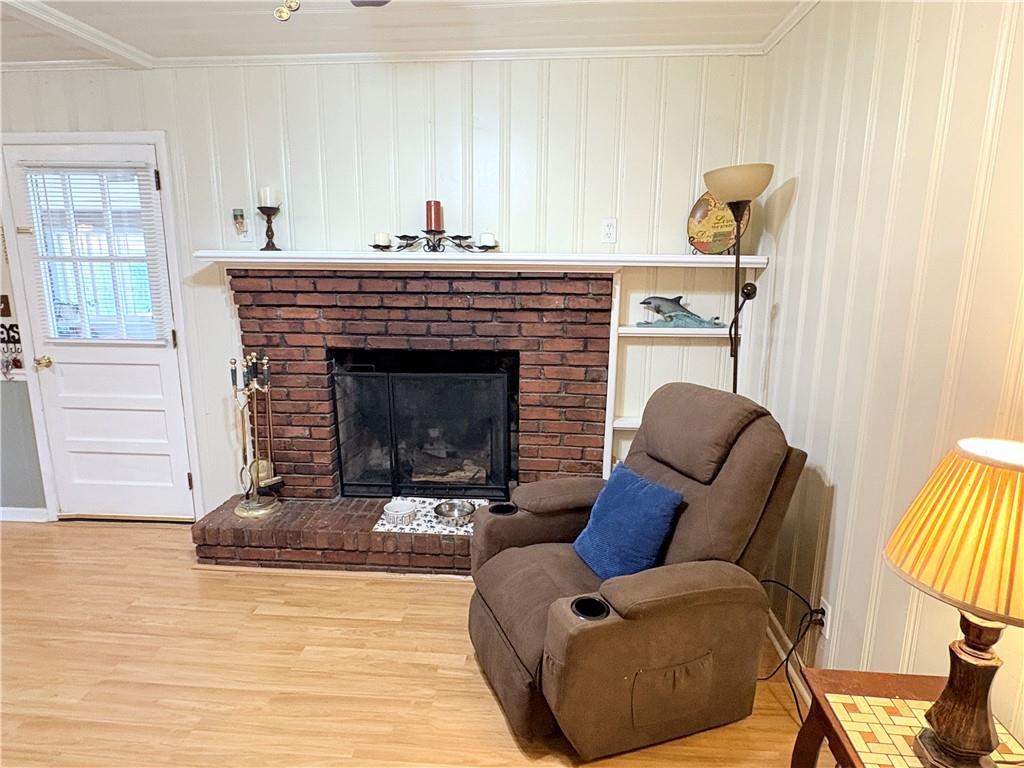 Description: Gorgeous brick home in the heart of Phenix City is ready for its new owner! This 3 bed, 1.5 bath home that sits on a beautiful level lot features a covered front porch, detached 2 car carport, & fenced backyard with a workshop. The interior features a spacious family room with bay window and brick fireplace (used only as decoration currently), then the kitchen will warm your hear with the country feel. The real wood paneling throughout, including on the ceiling really gives it the home a country cottage feel. The dining room and living room are cozy and welcoming with a wood burning fireplace in the living room. The bedrooms are spacious, 2 of the 3 rooms have carpet and the 3rd has hardwood floors. The 2 back bedrooms have a jack and jill 1/2 bathroom that is updated. The full bathroom in the hall way features tile flooring, backsplash behind the sink, and an area for storage and your laundry. It also features a heat lamp above the shower! There's a sunroom attached, perfect for enjoying the view of the backyard. This home is being sold AS-IS but is in good condition! - Roof replaced in 2024, main water/plumbing pipes updated about 6 years ago and kitchen pipes replaced about 3 years ago. Heated pump maintained annually. This home has been well maintained and loved!