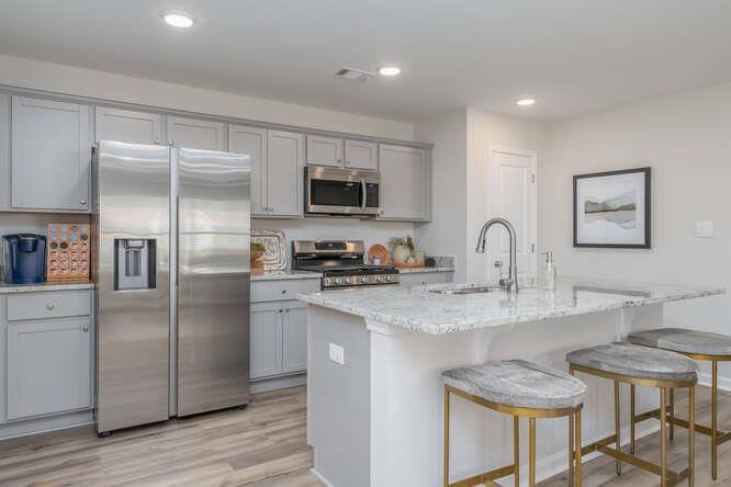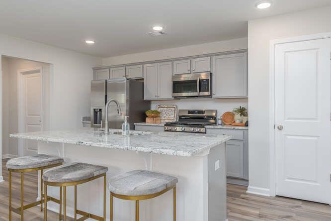 Description: --MODEL HOME NOT FOR SALE--The Sycamore floorplan offers a perfect blend of style and functionality. A warm foyer sets an elegant tone, leading to an expansive dining and great room filled with natural light—ideal for gatherings. The kitchen features a spacious granite-topped island, perfect for entertaining. The primary suite offers a private retreat with dual-sink bath and ample closet space. A 2-car garage connects to a practical mudroom with built-in cubbies. Three additional bedrooms and a second bathroom with dual vanities provide versatility.