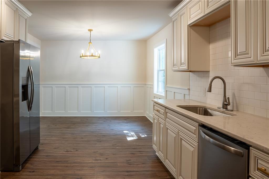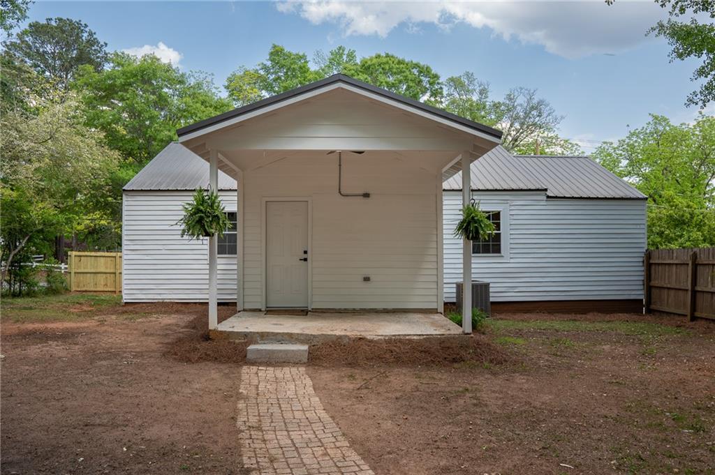 Description: This Opelika cottage has undergone a total renovation, and is move in ready. The home features an entirely new kitchen with contemporary cabinetry and new stainless appliances (including fridge!), alongside a brand-new hall bathroom with built in storage and subway tiled shower/tub combo. Added craftsman details like the fireplace mantel, 5 panel doors, and dining room moulding give a taste of luxury. Throughout the house new windows illuminate the updated spaces, complemented with new flooring, new drywall, and fresh paint. An oversized laundry/mud room connects you to the cute covered back porch overlooking a private, fenced in backyard that has been recently grass seeded. Enjoy endless hot water with a tankless system! The exterior boasts a freshly poured driveway and landscaping. A substantial 500 sq ft workshop building gives more space for crafts and hobbies, or additional storage. A prime location near Monkey Park and Downtown Opelika!