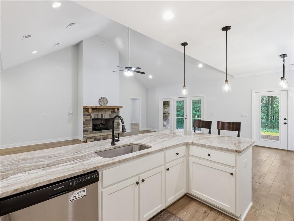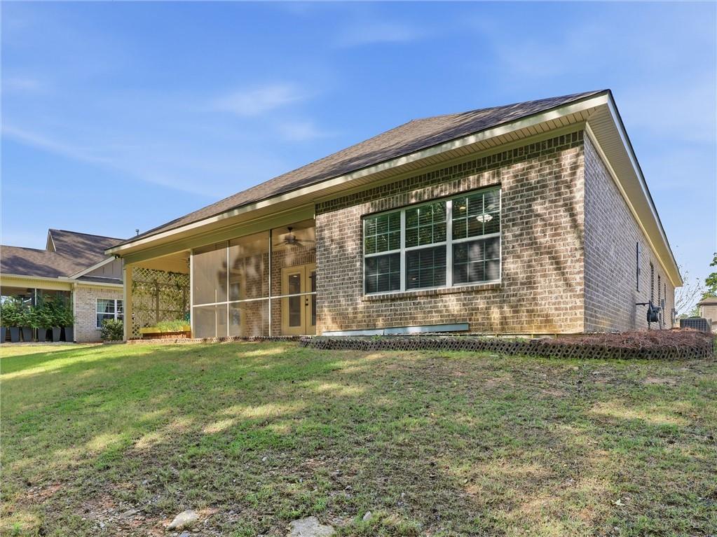 Description: Stunning brick home in Tuscany Hills community! Conveniently located with quick access to Hwy 280 and I-85 within 10 min. Featuring classic full-brick exterior, decorative shutters, and a spacious two-car garage with manicured landscaping. Breathtaking open-concept living area boasting soaring vaulted ceilings, gleaming hardwood floors, and an abundance of natural light. The great room centers around a stacked-stone fireplace with a rustic wood mantel. Multiple French doors seamlessly connect the living spaces to the outdoors, flooding the home with natural light. The chef's kitchen features crisp white custom cabinetry with crown molding, stunning granite countertops, a large center island with a sink, subway tile backsplash, stainless steel appliances including a gas range with professional-grade hood vent, built-in microwave. The adjacent dining area offers a stylish modern chandelier and natural light. Retreat to the spacious primary suite, highlighted by a tray ceiling, crown molding, and hardwood floors. The master bath impresses with a lengthy double granite vanity, Jetted tub, separate glass-enclosed shower, and a walk-in closet. Additional bedrooms are generously sized with hardwood floors, and ample closet space. Head upstairs to find a huge bonus room with vaulted ceilings. Perfect for a media room, playroom, or home office. A full bath is upstairs. Enjoy the expansive screened-in back porch with beadboard ceiling and dual ceiling fans, overlooking a private, wooded backyard. A covered open patio area with lattice accents provides additional space for outdoor dining or relaxing.