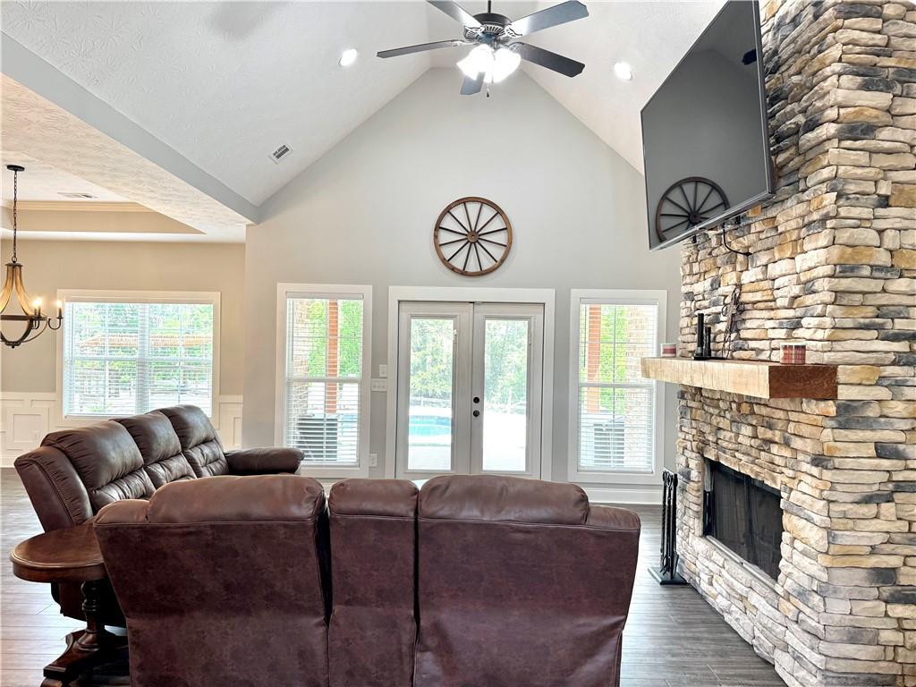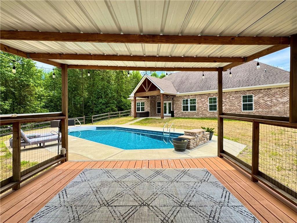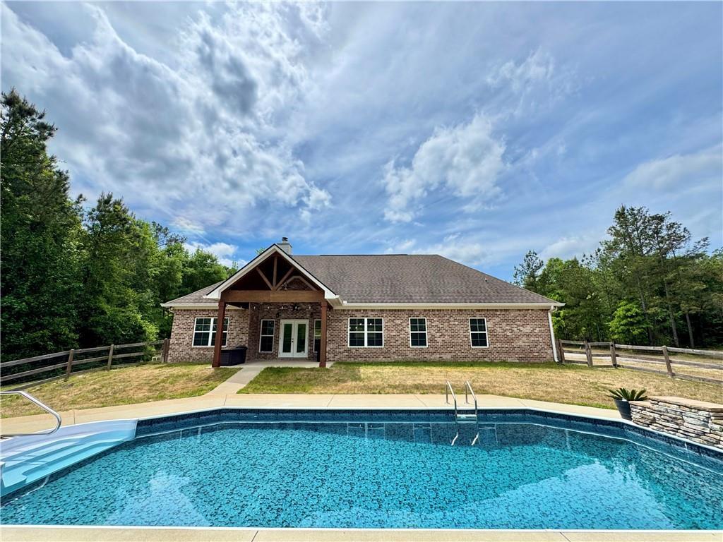 Description: Welcome home to 10810 AL. Highway 169. Built in 2020, this well maintained all brick 3-bed, 2-bath home offers 2,033 sq ft of thoughtfulness, comfort, and a backyard oasis you have to see to believe. Step inside to soaring ceilings, the perfect amount of natural light, and a thoughtful open layout with views of the sparkling blue saltwater pool from multiple rooms. The kitchen features stainless steel appliances, including a refrigerator, soft close cabinets, a large farmhouse sink, a hood range, a walk-in pantry, a dining area, bar seating, and opens to the family room with a floor to ceiling stone fireplace. The spacious primary suite is a private retreat with pool views, a walk-in closet, an oversized shower, and a separate soaking tub. Outside, enjoy a peaceful private lot with beautiful porches, a gazebo, a storage shed, an oversized garage, an electric gate, and a security system. This home truly has so much to see!