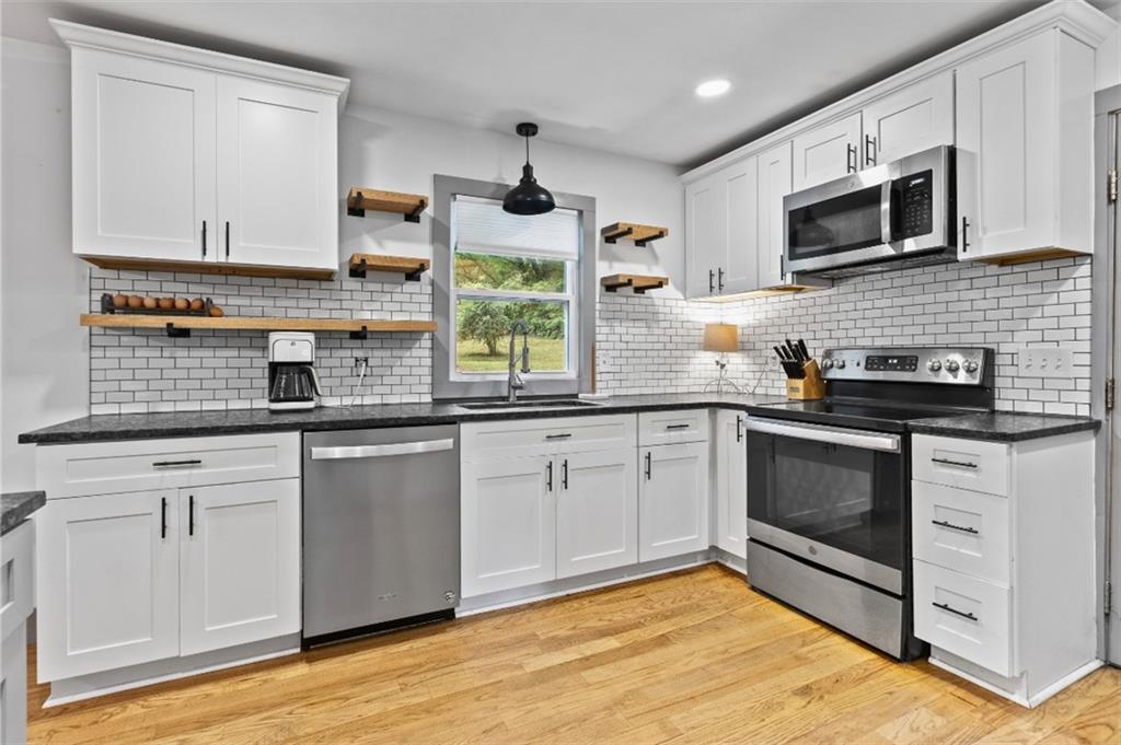 Description: Beautifully updated home offering 1,958 heated square feet, recently remeasured to include the added sunroom. This rare find blends character with thoughtful updates, setting it apart from the typical cookie cutter options. The kitchen features stylish open shelving, an island, hardwood floors, and a spacious dining area that is perfect for everyday living and entertaining. The sunroom is bright and inviting with hardwood floors, fully heated and cooled, and offers easy access to the backyard, making it a flexible living space. Enjoy no carpet throughout and the convenience of one-level living. Situated on a large 0.80 acre fenced lot, there is plenty of room to enjoy both inside and out. If you are looking for a home with charm, updates, and a unique feel, this one is worth seeing.