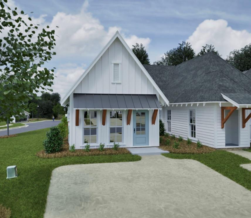 Description: Corner lot! The Duette 3B is a two bedroom, two bathroom, 1183 square foot home. As you enter into the home, you enter into the living room that features large windows and vaulted ceilings. The living room leads to the open concept dining room and kitchen that features custom cabinets and a large center island. As you make your way to the back of the home, you will find the guest bedroom and guest bathroom and laundry room. The owners retreat rests on the back of the home and features an en suite bathroom and large walk-in closet as well as access to the back porch.