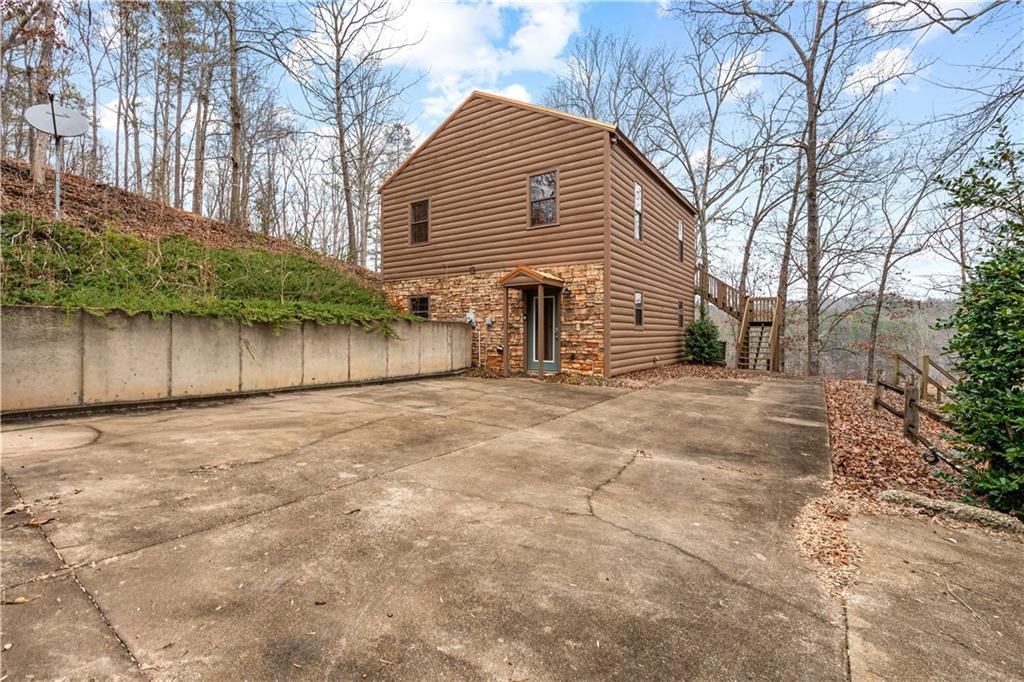 Rustic lake cabin retreat located just north of Co. Rd. 82 on the Big Tallapoosa River. This spacious getaway offers 3 bedrooms and 2 full baths and sleeps 10 comfortably, making it an ideal vacation home or income-producing rental. The main level features two bedrooms, a full bath, and a second living area that is perfect for kids or guests, along with access to a covered patio. Upstairs, you will find the primary suite with a private bath, plus an open-concept kitchen and family room showcasing exposed beams and plenty of space for everyone to gather. The kitchen is upgraded with stainless steel appliances. Step out onto the covered deck and enjoy peaceful mornings and sunsets with beautiful lake views surrounded by nature. You are only a few steps from the water with year-round lake access, including a floating dock with jet ski port. Although this is an off-water lot, the view and access make it feel like true waterfront living. A cement golf cart path leads directly to the dock for easy access. An additional lot is included with the property. Recent updates include a new metal roof and fresh interior and exterior paint. This is the lake cabin you have been waiting for, perfect for weekends, summers, or rental income opportunities. *Property includes 2 parcels196 County Road 313 Wedowee, AL 36278